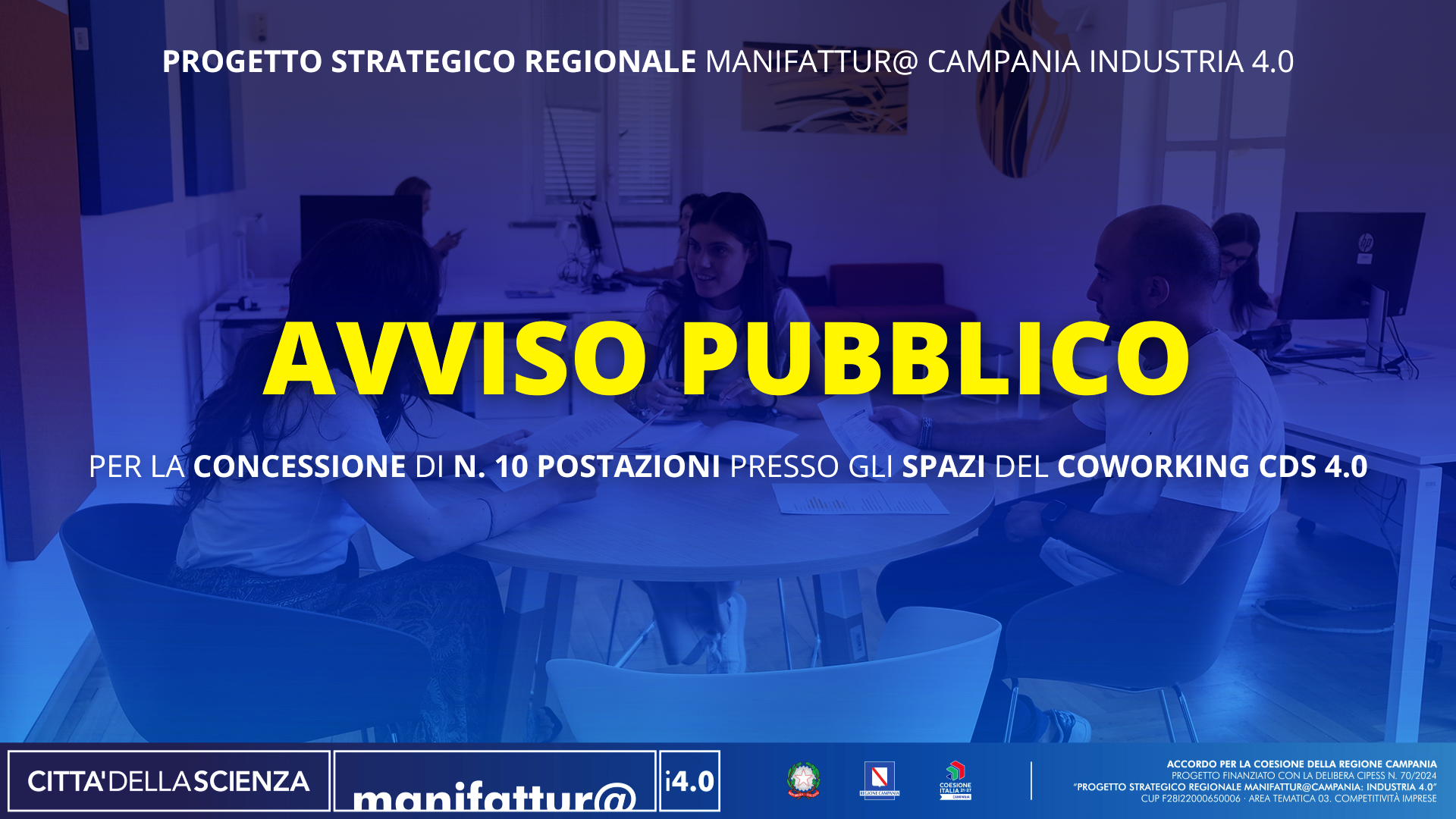 Nell’ottica di favorire la riconversione degli spazi e dei luoghi del lavoro secondo le traiettorie del paradigma dell’industria 4.0, Fondazione IDIS – Città della Scienza mette a disposizione ambienti di lavoro condivisi altamente funzionalizzati a favore di professionisti, freelancer e imprenditori che operano nel vasto settore dell’economia della conoscenza. L’obiettivo è favorire l’attrazione di talenti e start-up e la nascita e lo sviluppo di network di produzione collaborativi in grado di attivare la circolazione di conoscenze e la contaminazione delle competenze per l’innovazione.