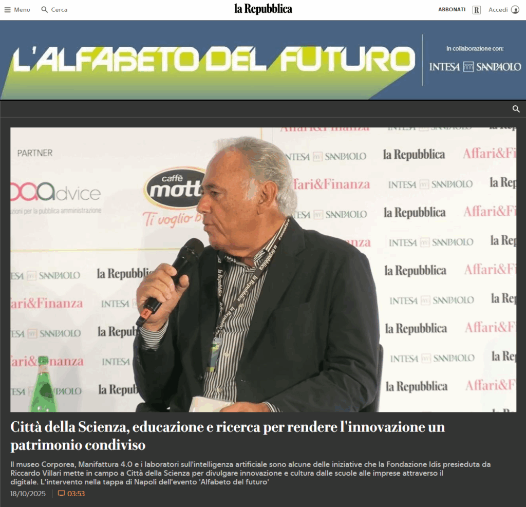 Il Museo Corporea, il progetto Manifattura 4.0 e i laboratori dedicati all’intelligenza artificiale sono solo alcune delle iniziative con cui la Fondazione Idis, presieduta da Riccardo Villari, promuove la divulgazione scientifica e tecnologica negli spazi di Città della Scienza.
